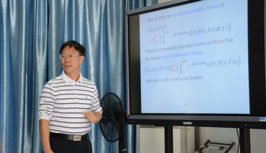 报告人简介:郭先平,男,博士,博士生导师,国家杰出青年科学基金获得者(2009), 1996年于中南大学获博士学位,2002于中山大学晋升为教授,2003年入选教育部优秀青年教团队助计划,2004年入选教育部新世纪优秀人才支持计划,2010年被评为珠江学者特聘教授,2015年获国务院政府特殊津贴。现任全国概率统计学会副理事长,担(曾)任国际(SCI)杂志 Advances in Applied Probability,Journal of Applied Probability,Science China Mathematics,Journal of Dynamics and Games,以及国内期刊《中国科学:数学》、《应用数学学报》、《应用概率统计》、等杂志编委。研究兴趣为马氏决策过程、随机博弈等。曾获得国家杰出青年科学基金、国家自然科学基金面上项目和重点项目多项。