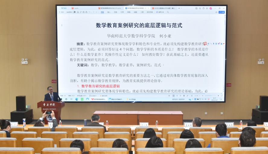 本次会议以“聚焦数学教育前沿,赋能数学教师专业成长——数学教育创新与实践探索”为主题,特邀了南京师范大学宁连华教授、华南师范大学何小亚教授、广州大学廖运章教授、山西师范大学杨红萍教授、贵州师范大学杨孝斌教授、华南师范大学刘喆教授等多位知名专家作专题报告。报告内容涵盖数学教育论文写作、案例研究、课例研究方法以及数学教学设计等多个方面,为参会者呈现了一场丰富的学术盛宴。